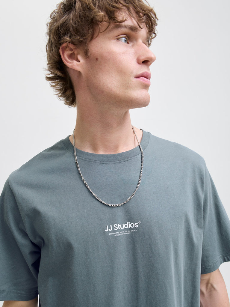 This basic Jack and Jones T-shirt is a wardrobe essential that works well with jeans, shorts, and trousers. Cotton is a natural fibre known for its soft and breathable properties.
