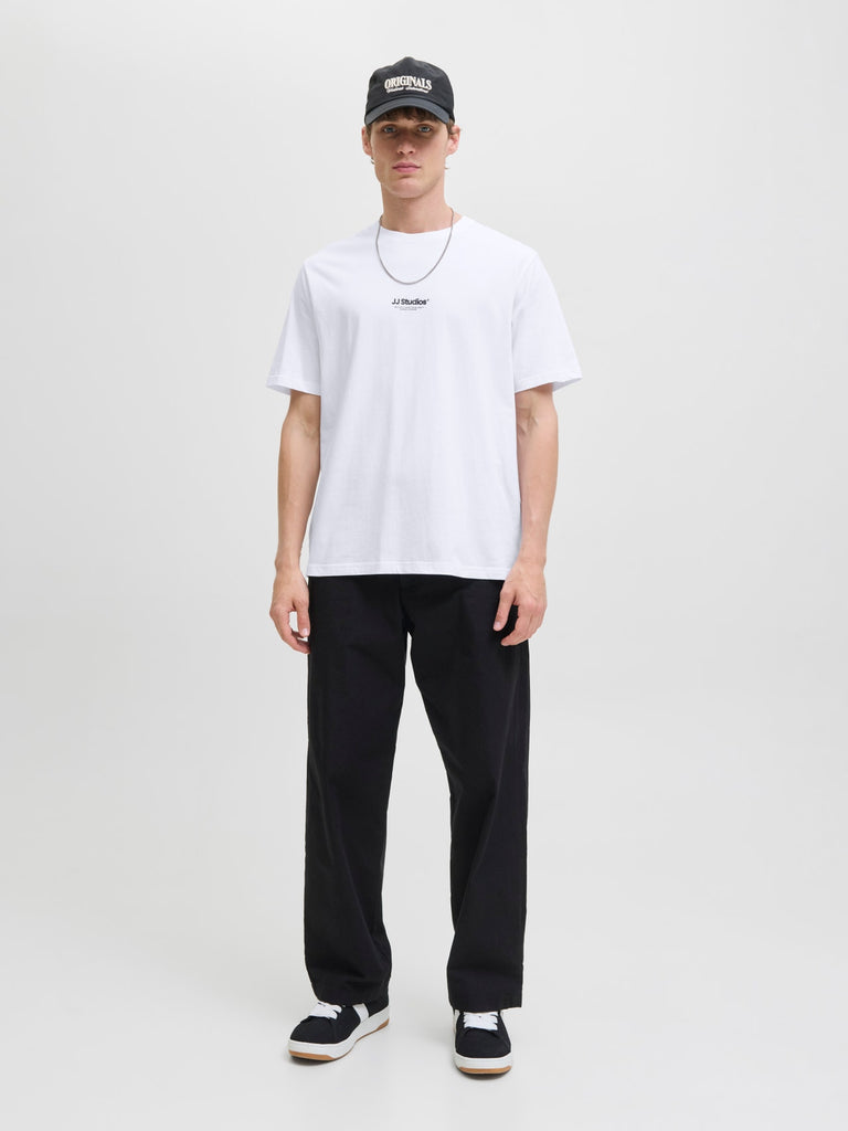 This basic Jack and Jones T-shirt is a wardrobe essential that works well with jeans, shorts, and trousers. Cotton is a natural fibre known for its soft and breathable properties.