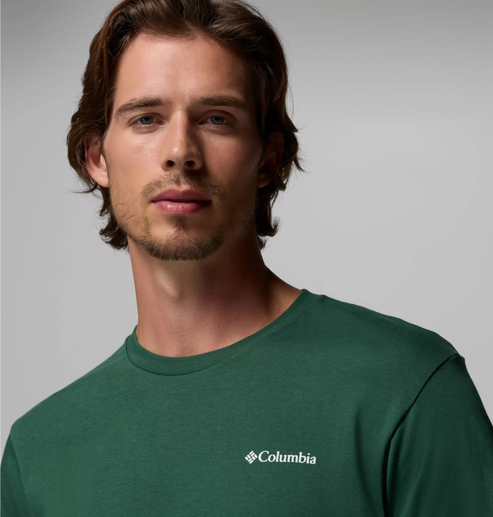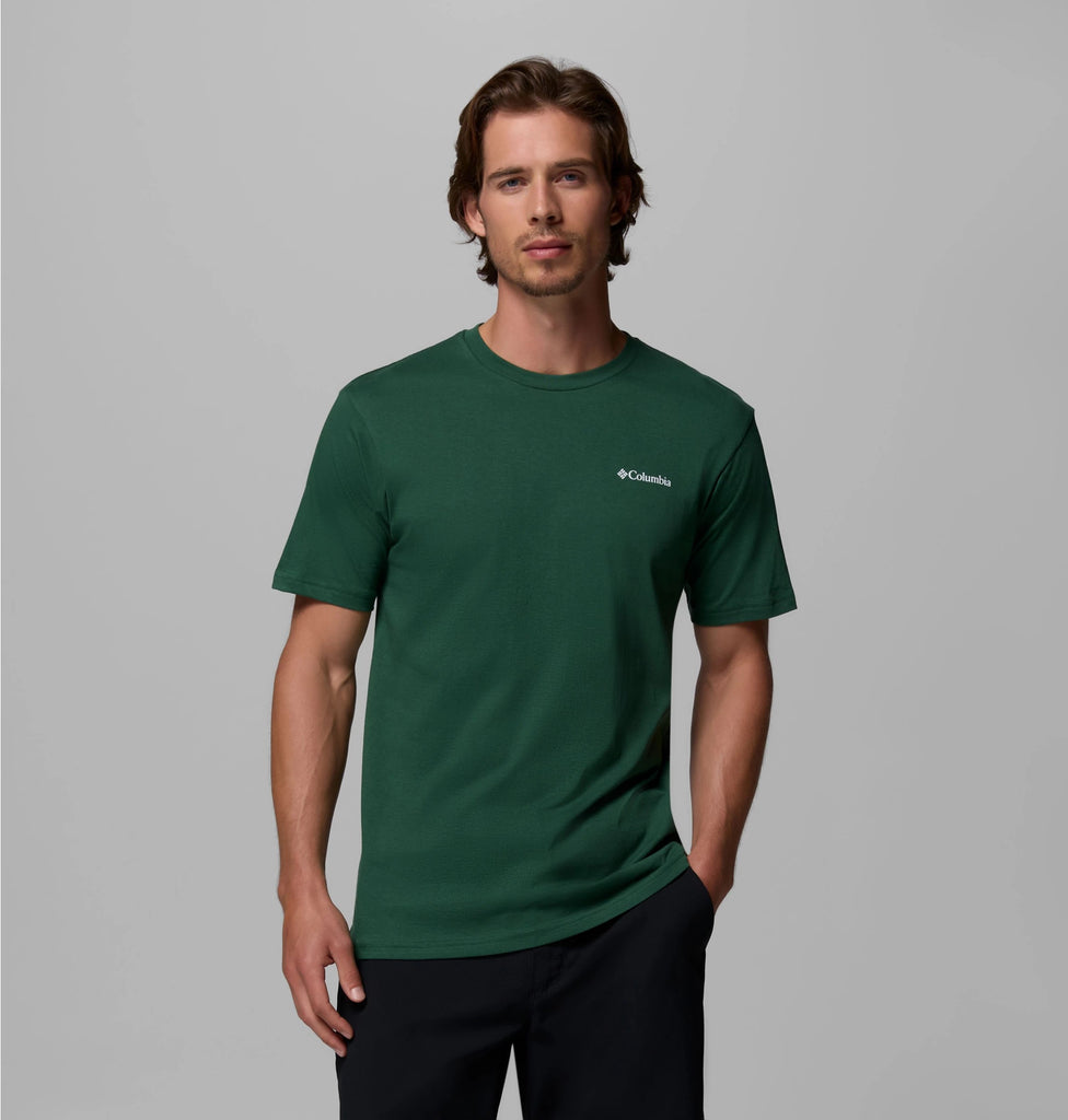 Casual comfort and everyday style combine in this cotton t-shirt with classic front logo and graphic print on the back.